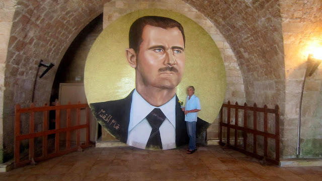 C'est encore par un véhicule public, un minibus, que depuis Masyaf nous rejoignons Tartous [طرطوس]… Là notre petit groupe de la Communauté syrienne de France est accueilli par notre ami Setih qui nous invite chez lui pour quelques instants de repos… Setih nous parle alors longuement de sa ville… de ses martyrs. Jusqu'au 5 septembre dernier, Tartous avait été relativement épargnée par le terrorisme islamique. Ce jour-là au moins 30 personnes ont été tuées et 45 blessées dans un double attentat. Cette attaque a été menée sur un pont à la périphérie de la ville de Tartous à l'aide d'une voiture piégée puis d'un kamikaze qui a déclenché sa ceinture d'explosifs lorsque des personnes se sont rassemblées pour secourir les blessés de la première explosion. Longtemps relativement épargnée, Tartous n'en a pas moins payé un lourd tribut à la guerre depuis 2011… à tel point d'être considérée comme la Capitale des Martyrs. De tous les gouvernorats syriens, Tartous est celui qui compterait le plus fort ratio de morts pour la patrie syrienne dans l'Armée et la milice des Force de défense nationale. "Les frontières de Tartous ne sont pas les limites de la province, mais celles de la Syrie." La veille de notre visite, notre ami Setih apprenait la mort au front d'un de ses cousins très proches…