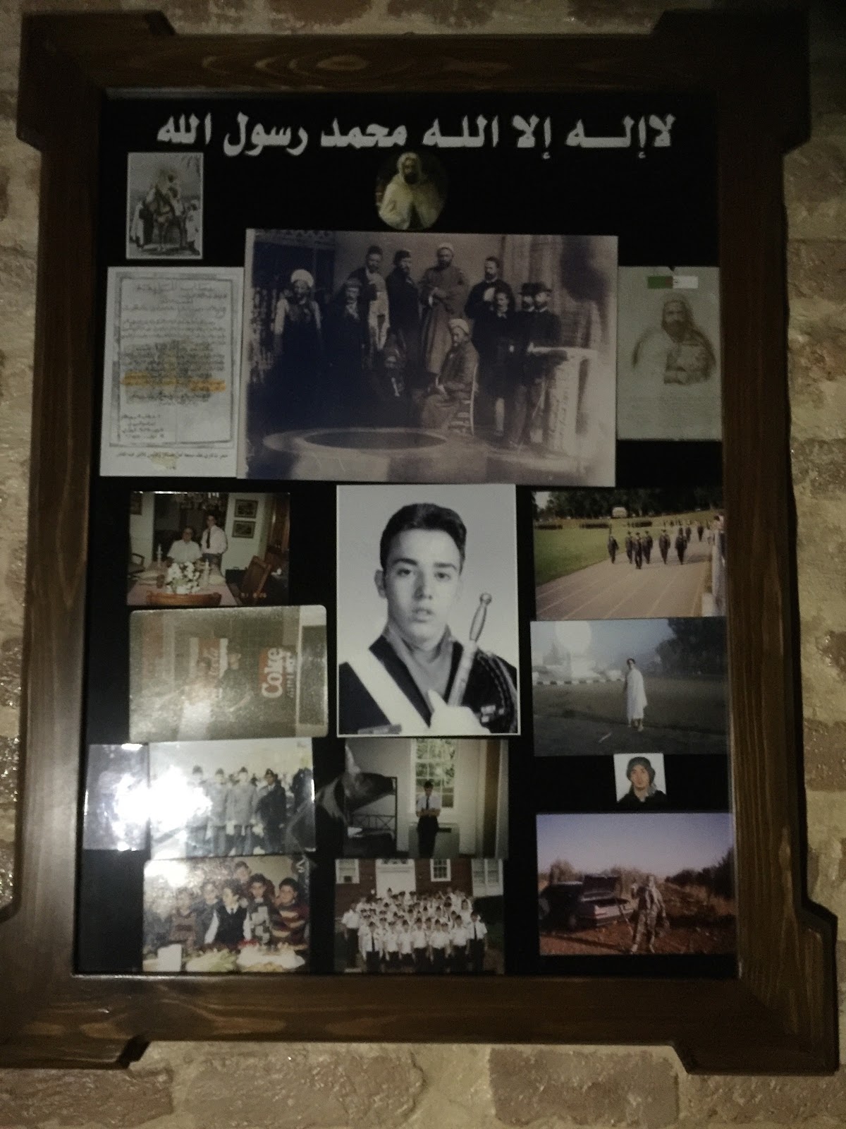 | Dans l'appartement que s'est réservé un arrière-arrière-petits-fils de l'Émir, ici sur la photo centrale entourée de photos de l'Émir et de sa famille à Damas |