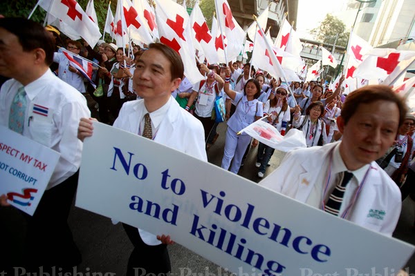 Les professions de santé solidaires du diagnostic des campus Siriraj et Ramathibod de l’université Mahidol ainsi que des universités Thammasat, Burapha, Chulalongkorn, Prince Songkla, Naresuan et Rangsit accourent au chevet du Premier ministre Yingluck Shinawatra… Un Premier ministre têtue comme un bourricot, sinon atteinte d’autisme, face à la colère d’un peuple aspirant à une réelle démocratie… Un Premier ministre qui s’obstine à maintenir des élections au résultat d’avance connu… Des élections qui une fois de plus seraient entachées de corruption et au résultat figé, mais qui par la défection de plusieurs provinces faute d’un nombre suffisant de députés élus ne permettront pas à la Chambre de se réunir… Un scrutin inutile… Un entêtement provocateur…
