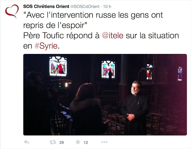 Selon lui, les Syriens accueillent positivement l'intervention russe, qui tranche avec les précédentes frappes de la coalition occidentale : « aujourd'hui, on peut voir très clairement que l'armée syrienne regagne du terrain, tandis que dans le passé, Daesh gagnait toujours du terrain malgré les frappes américaines. Je ne sais pas si c'était des frappes, ou si c'était des munitions… »
